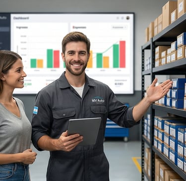 Control Total del Stock: Cada vez que confirmas una orden, los repuestos se descuentan automáticamente de tu inventario. Nunca más te vas a quedar sin stock por un error de cálculo.
